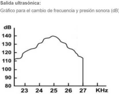 Este repeledor ultrasónico proyecta frecuencias directas de 25.000Hz a 26.000 HZ durante 0,3 segundos a cada 4 segundos intermitentemente, lo cual genera que la plaga en cuestión no logre a acostumbrarse.
