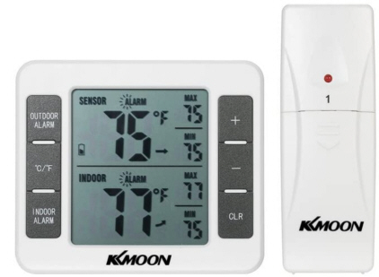 Con la pantalla LCD digital fácil de leer para este termómetro, puede controlar fácilmente la temperatura en su lugar y en otro punto SIN CABLES. Es adecuado para colocar en el escritorio, pegar en la superficie de metal o colgar en la pared. PARA CONTROL DE TEMPERATURAS CON ALARMAS PROGRAMADAS DE MÍNIMO Y MÁXIMO DE : SALAS, CÁMARAS, REFRIGERADORES, CONSERVADORES, OTROS LUGARES DE SU HOGAR, EL EXTERIOR, EQUIPOS MÓVILES REFRIGERADOS DE TRAILERS, ETC., ETC. ¡SIN CABLES! Características: Muestra de forma automática y simultánea la temperatura interior y exterior. Visualización de temperatura máxima y mínima en interiores y exteriores con compensación manual del valor máximo / mínimo. Ajuste de alerta de temperatura y función automática de alarma de temperatura alta / baja con tendencia de temperatura. Gran pantalla LCD, fácil de leer. La temperatura se puede mostrar en grados Celsius (℃) o Fahrenheit (℉). Termómetro digital perfecto para pecera y acuario. Bajo consumo y gran duración de pilas tanto en el emisor como en el receptor. Indicador de baterías bajas en ambos dispositivos. Especificaciones: Color: Blanco