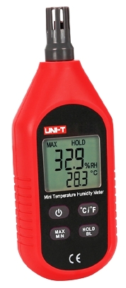 Este Termohigrometro portátil digital es apto para controlar y chequear en un segundo las condiciones de temperatura y humedad de distintos espacios. Características: - Tiempo de respuesta: 1 segundo. - Indicador de sobrecarga: 100% RH/OL - Función de max/min. - Función “Hold” para mantener datos. - Luz de fondo para ambientes oscuros. - Auto apagado: después de 5 minutos sin funcionamiento. - Indicador de batería baja - Alimentación: 3 pilas tamaño AAA 1.5 V (incluidas) Especificaciones | Rango | Precisión | Medición de Humedad HR | 0 ~ 100 % | +- 5% RH | Medición de Temperatura °C | -10 ~ 60° C | +- 1.0 °C | Medición de Temperatura °F | 14 ~ 140° F | +- 2.0 °F |